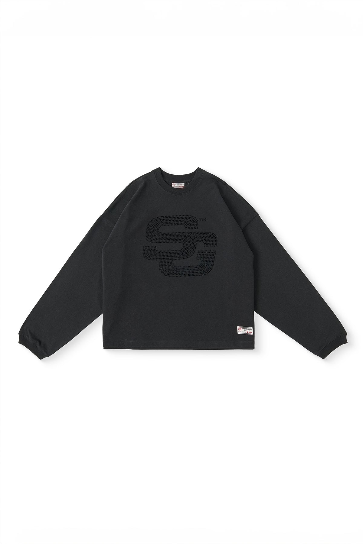 SG24 RHINESTONES LOGO LS TEE - JET BLACK