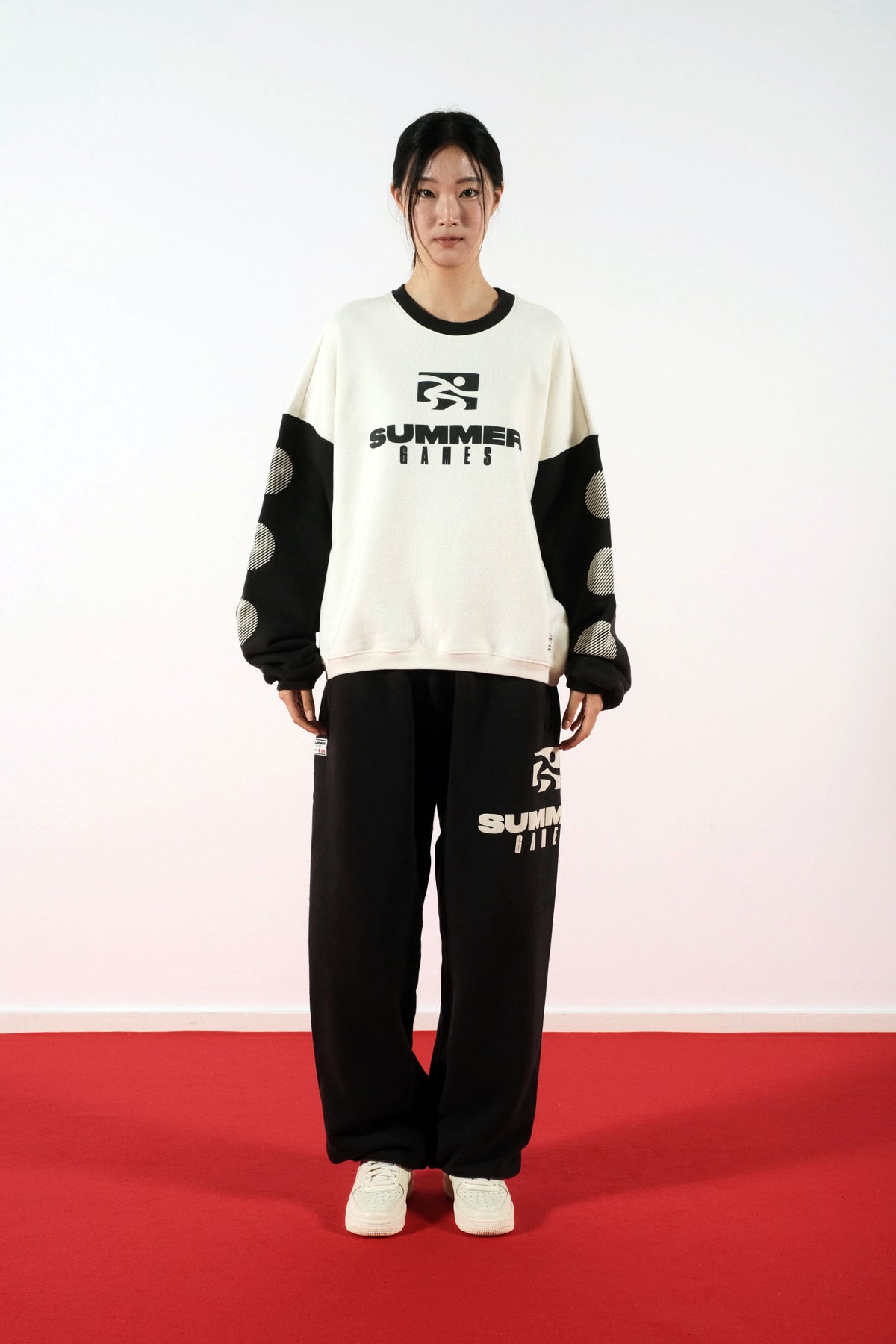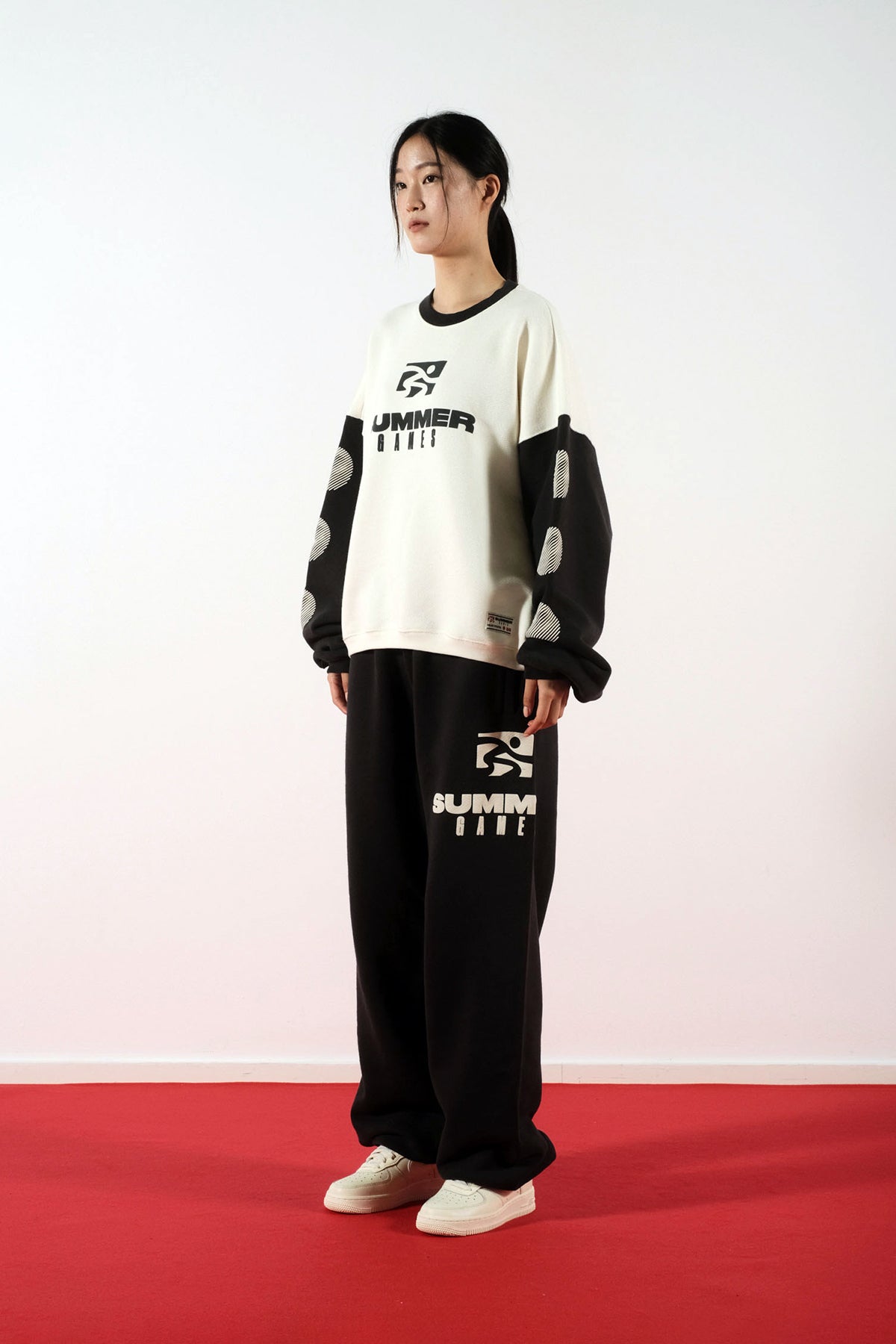 SUMMER GAMES ICON CONTRAST CREWNECK SWEATSHIRT - CANNOLI CREAM & JET BLACK